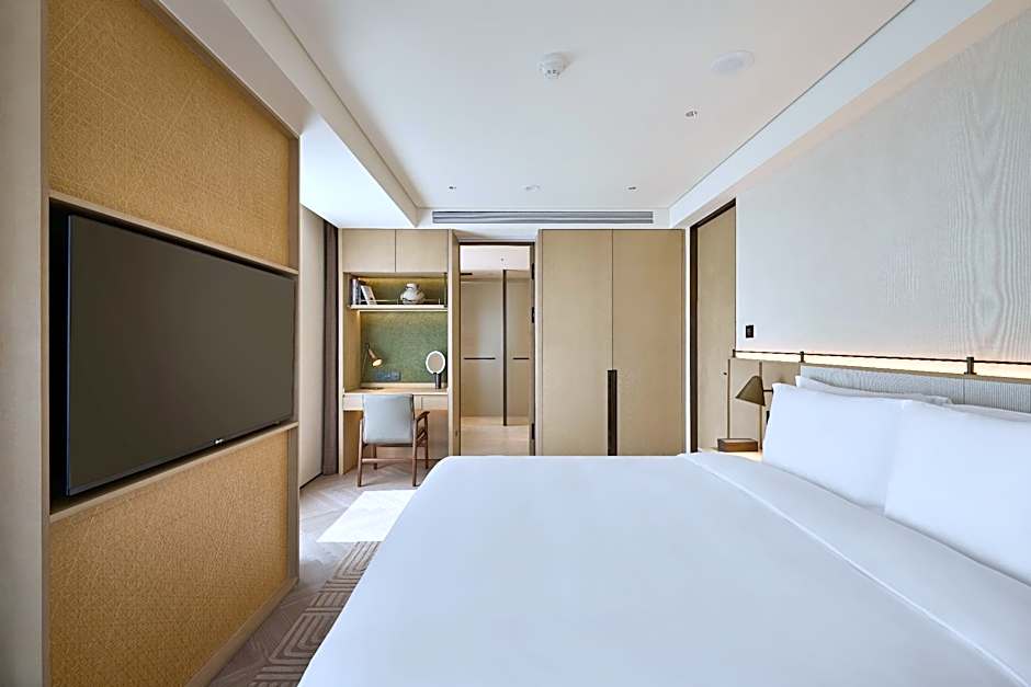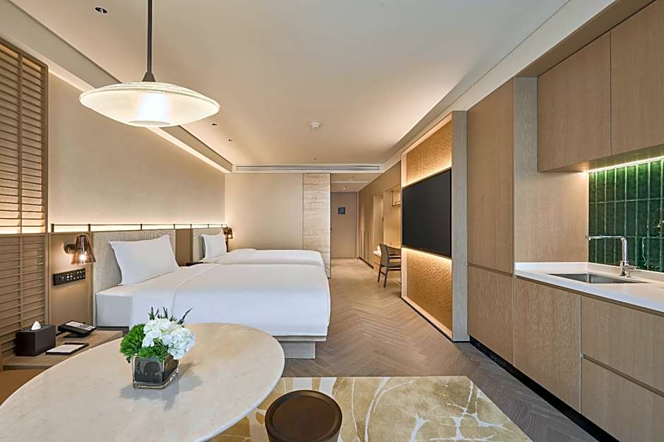 A diverse lineup of accommodations ranges from Studios and city-view options to Junior Suites and Deluxe Suites, including a 2-bedroom Deluxe Suite and a 2-bedroom Family Suite. City views appear in several choices, and some suites feature club lounge access for an extra touch of luxury.